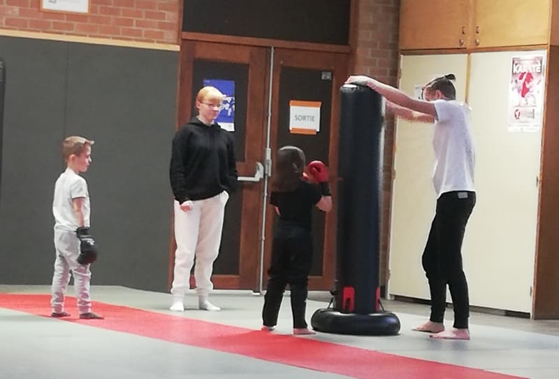 Zéro combat libre, zéro frappe au visage. Exercices ludiques et cibles souples.